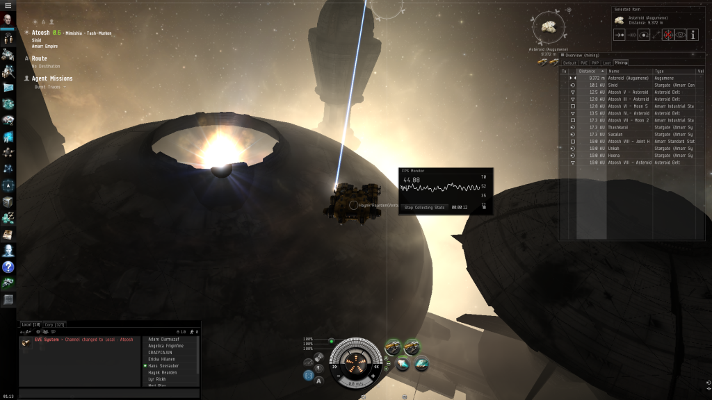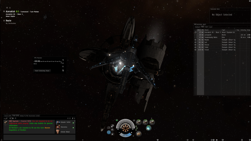 I have been noticing some lag and stuttering when the camera is panned around large objects like stations, asteroids and gates OR high particle items like gas clouds. The image lags, stutters across the screen. If I pan the camera around the whole screen multiple times quickly sometimes it seems to stop, but not every time. I've opened up the FPS monitor when it is doing it and the frames are wildly inconsistent, jumping up and down, normally it's locked right in at 60fps(interval one) and wont budge. I tried turning off different graphics features and when I turned off shadows the problem became a lot better but didn't go away.